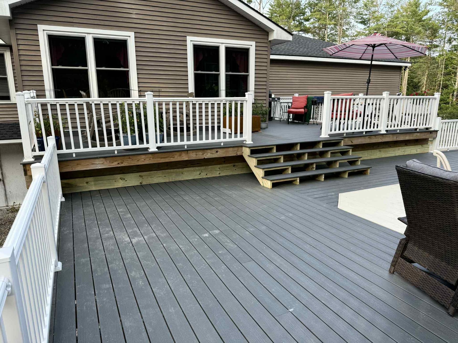 specializes in custom decks. We design, build and install custom decks for homes throughout Maine. If your plan of having a simple patio deck or a multi-level structure has you combing the industry for a local deck company, turn to our builders for trusted quality work, seamless service and competitive prices. We are expert designers and installers, trained to meet our customers’ requests for stunning, well-crafted custom decks.